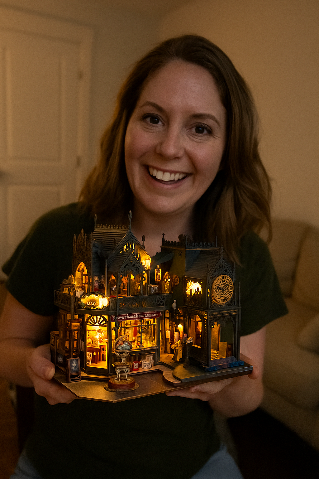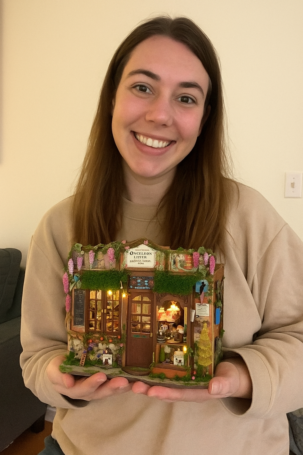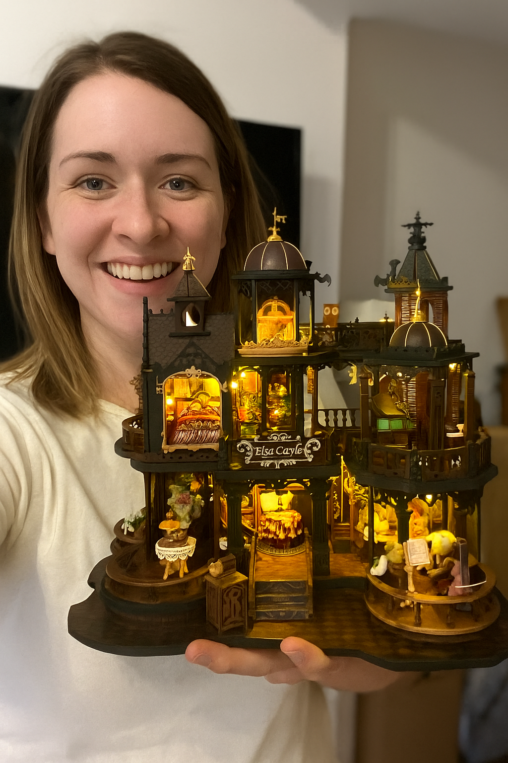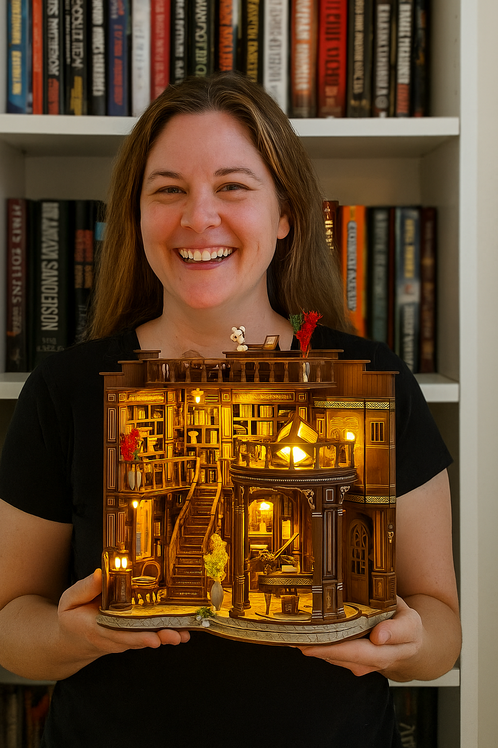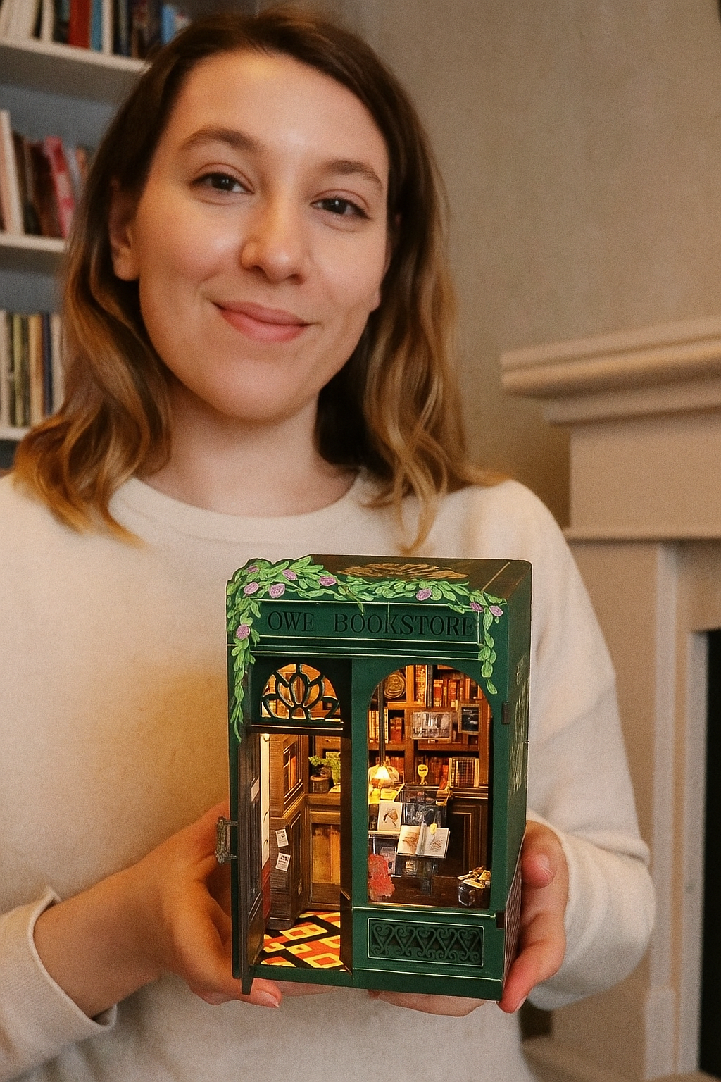 “The tiny books have spines, and the lamp actually lights up. I’m obsessed.”