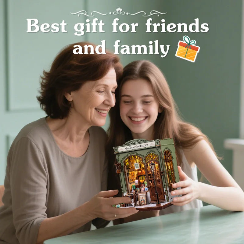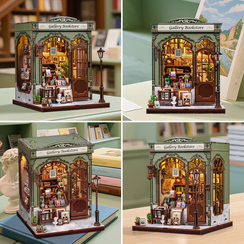 Assemble Gallery Bookstore at your own pace — placing books, frames, plants, windows and tiny decor to create a miniature bookshop that feels like a living painting. It’s a relaxing, hands-on build that brings the calm of an art bookstore, soft light and quiet afternoons right onto your shelf.